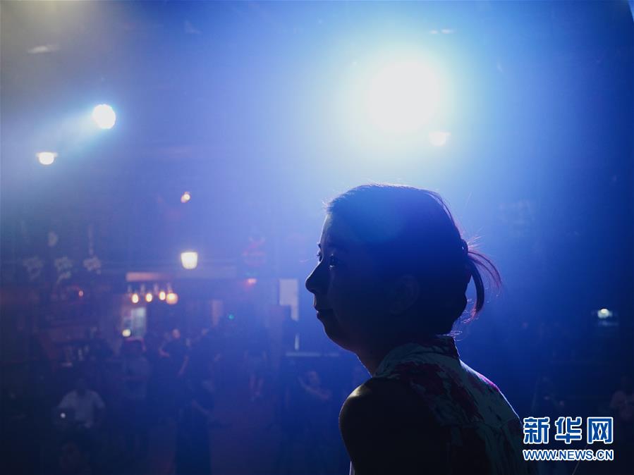 8月14日,8772樂隊(duì)成員在演唱會前排練。新華社發(fā)(崔博文攝)
