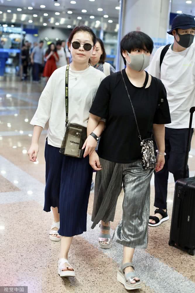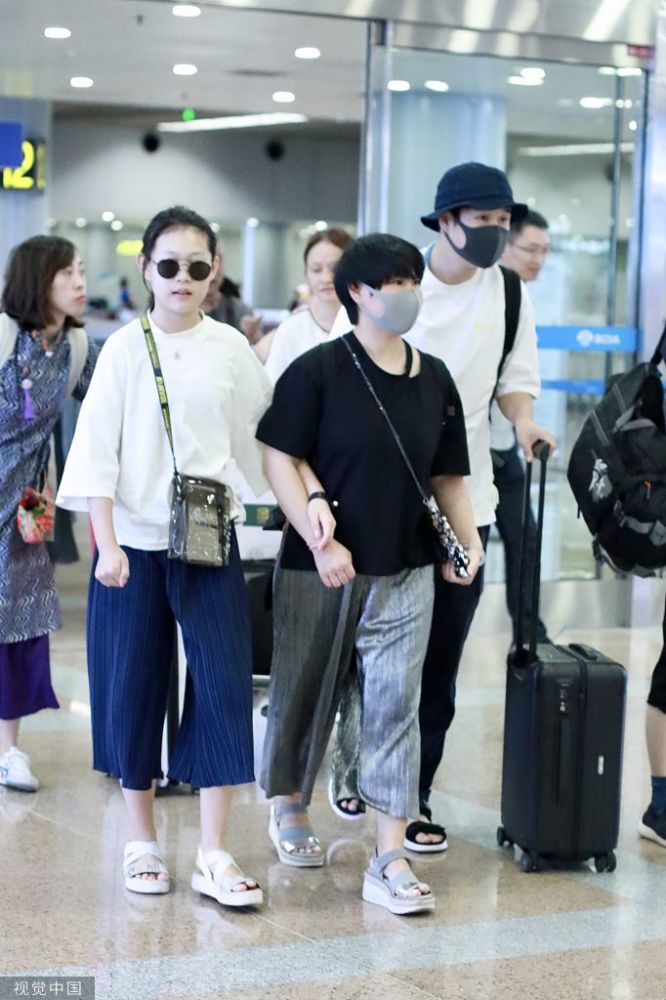 2019年8月15日,北京,小沈陽和妻子沈春陽帶女兒沈佳潤現(xiàn)身機場,一家三口罕見同框。小沈陽承包行李甘當“苦力”,沈春陽和女兒全程挽手親昵似閨蜜,兩人同穿闊腿褲和鞋子,畫面溫馨有愛。