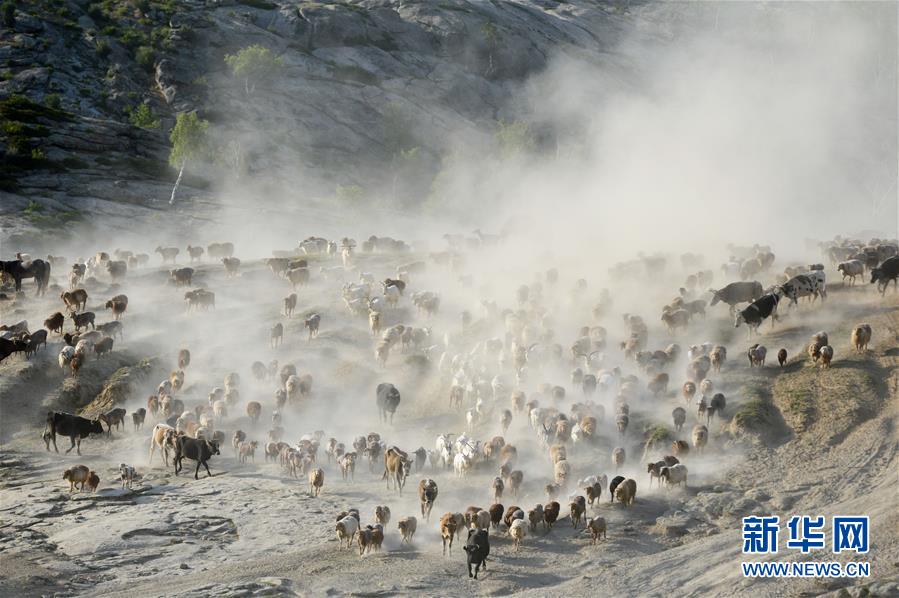 這是牧道上轉(zhuǎn)場(chǎng)的牲畜(6月6日攝)。新華社記者丁磊攝
