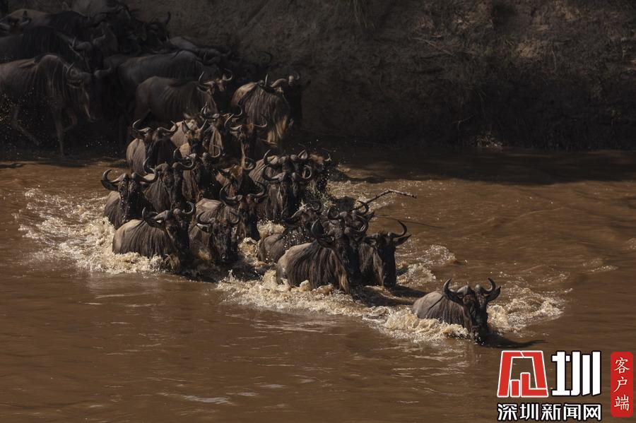 非洲角馬大軍集體遷徙,勇渡致命河流上演“生死時速”。