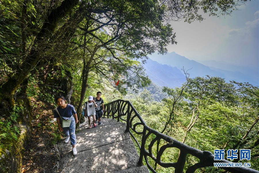 游客在重慶金佛山風景區(qū)內(nèi)的絕壁棧道上游覽體驗(8月20日攝)。 新華社記者 劉潺 攝