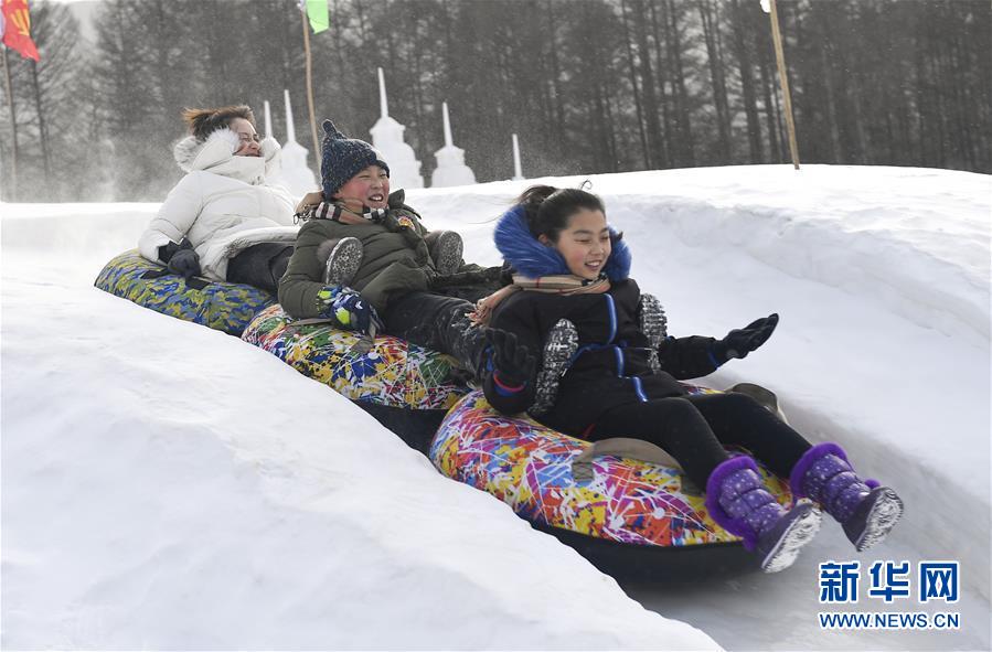 游客在二合雪鄉(xiāng)雪圈公園內(nèi)體驗滑雪圈(1月23日攝)。 新華社記者許暢攝
