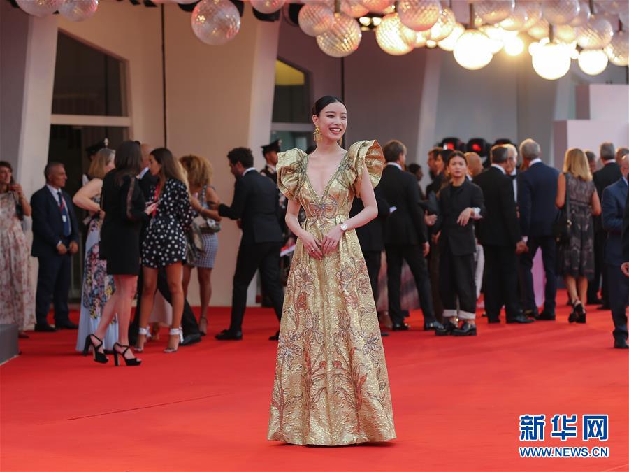 8月28日,在意大利威尼斯,中國(guó)演員鐘楚曦亮相開幕式紅毯。新華社記者 程婷婷 攝