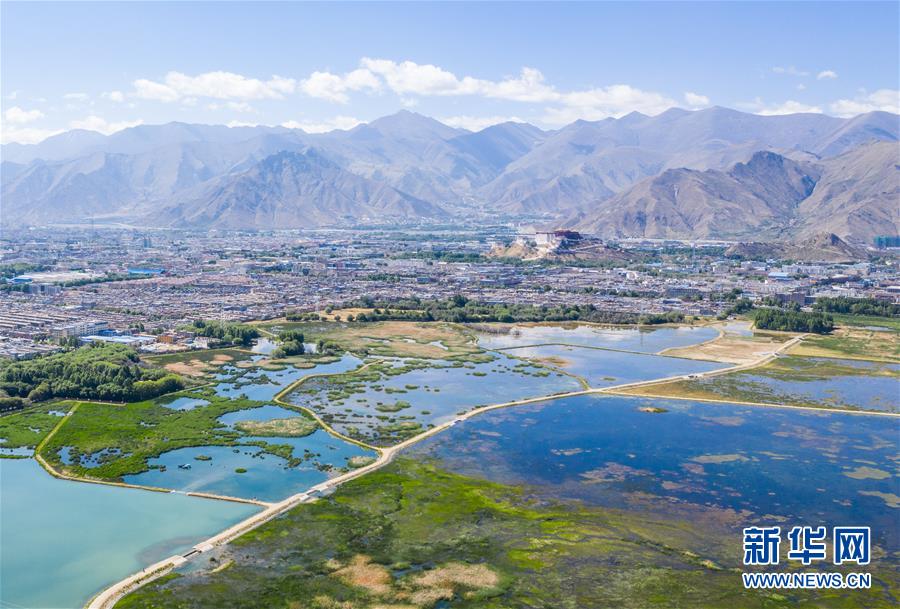 西藏拉魯濕地風(fēng)光(6月5日無(wú)人機(jī)拍攝)。新華社記者 普布扎西 攝