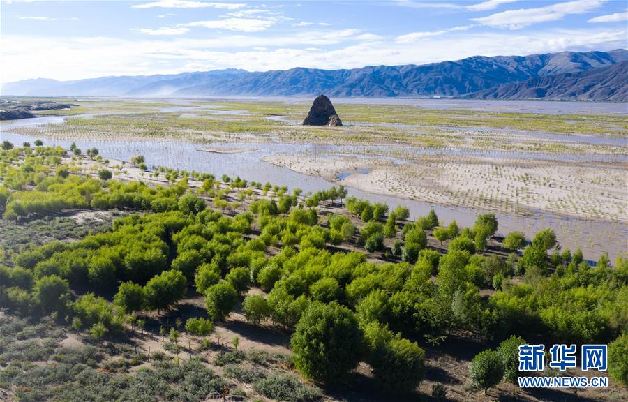 西藏雅魯藏布江兩岸栽植的樹木(7月16日無人機(jī)拍攝)。新華社記者 普布扎西 攝