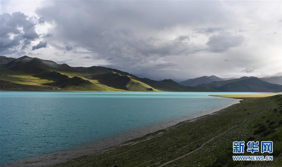 8月31日無人機拍攝的羊卓雍錯風(fēng)光。 新華社記者 晉美多吉 攝