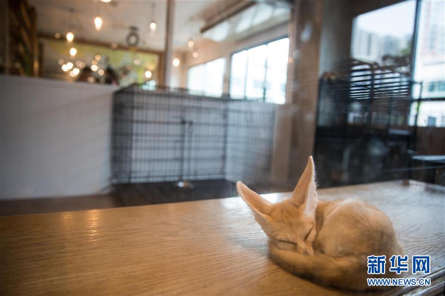 9月9日,一只闊耳狐在曼谷動物咖啡館休息。 新華社記者 張可任 攝