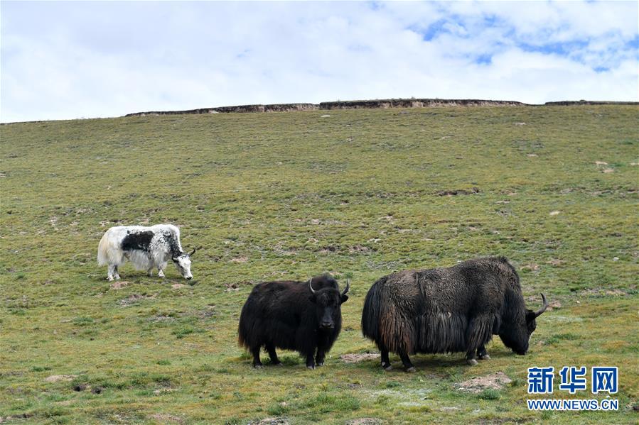 這是在青海省玉樹(shù)藏族自治州治多縣治渠鄉(xiāng)同卡村拍攝的牧民合作社草場(chǎng)上的牦牛(9月12日攝)。 新華社記者 孫瑞博 攝