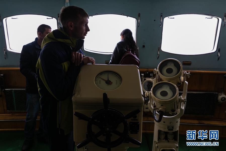 9月14日,在俄羅斯摩爾曼斯克,人們在核動力破冰船“列寧”號內(nèi)部參觀。 新華社記者 白雪騏 攝