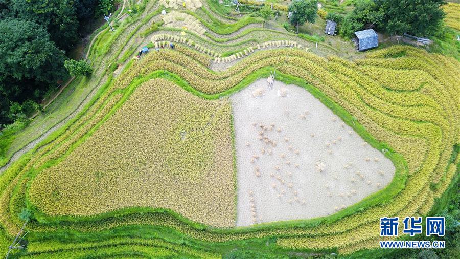 這是9月17日無人機拍攝的貴州省榕江縣計劃鄉(xiāng)計劃村陽開苗寨梯田。 新華社記者 楊文斌 攝