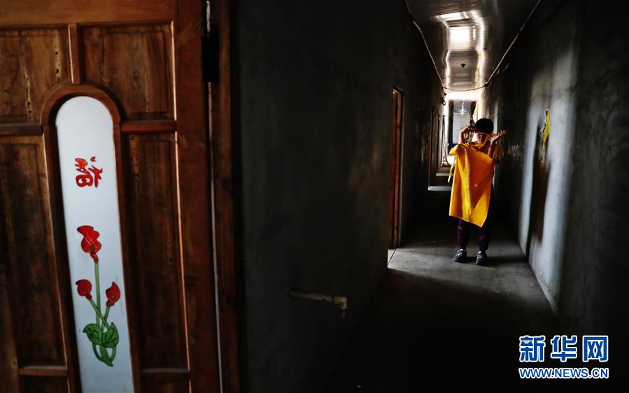 郭旗穿上工作服準(zhǔn)備去魚棚(9月6日攝)。 新華社記者 楊青 攝