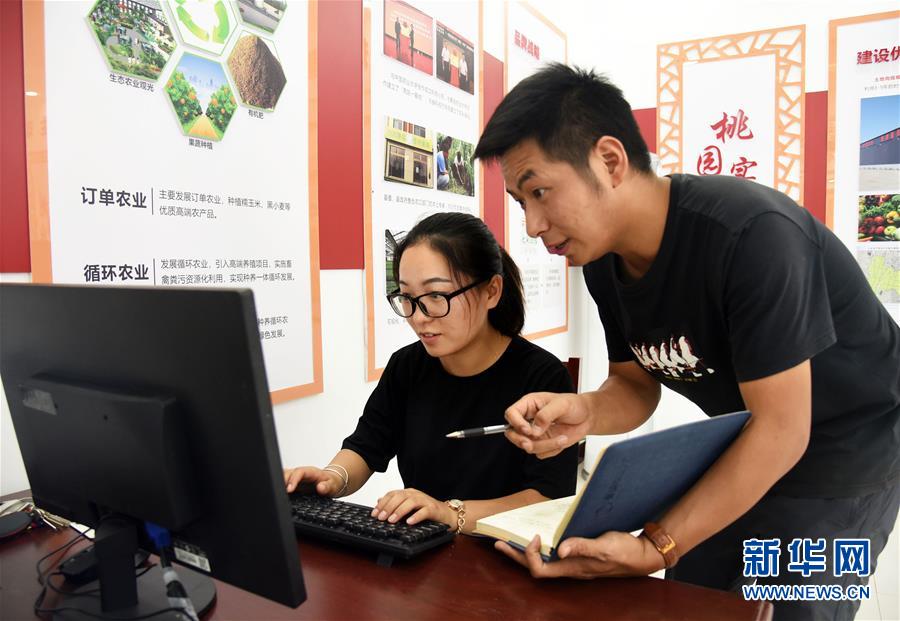 在山東省德州市平原縣的農(nóng)場里,楊春雷(右)和卜璐璐在辦公室將查看農(nóng)田記錄的數(shù)據(jù)錄入電腦,以便進行數(shù)據(jù)分析(8月22日攝)。 新華社記者 王凱 攝