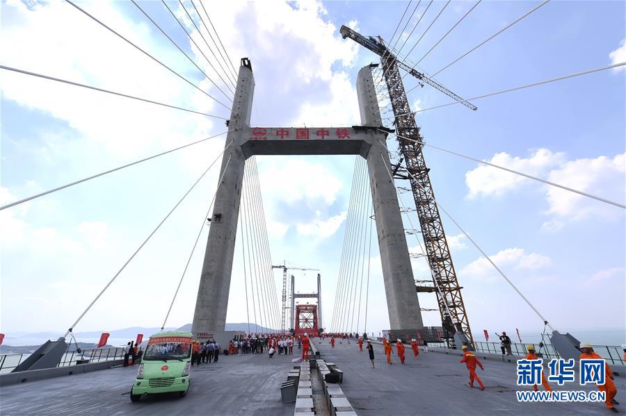 9月25日拍攝的平潭海峽公鐵大橋合龍貫通慶?;顒?dòng)現(xiàn)場(chǎng)。新華社記者林善傳攝