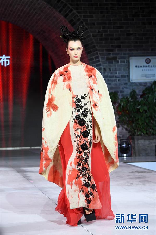 9月25日,模特在榮昌夏布·張義超非遺時尚大秀上展示時裝設(shè)計師張義超的時裝作品。 新華社記者 唐奕 攝