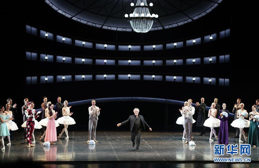 10月2日,芭蕾編舞大師鮑里斯·艾夫曼(中)在芭蕾舞劇《柴可夫斯基》演出結(jié)束后謝幕。 新華社記者 金良快 攝