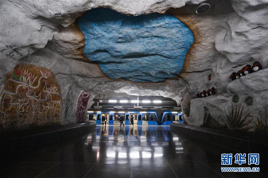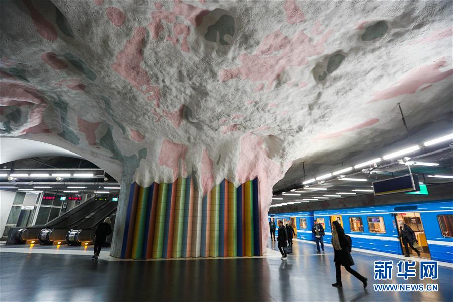 10月8日,在瑞典斯德哥爾摩,乘客在一處地鐵站內(nèi)行走。在瑞典首都斯德哥爾摩,每座地鐵站的站臺(tái)、墻壁及大廳的風(fēng)格設(shè)計(jì)都無(wú)一相同,各有特色。藝術(shù)家們運(yùn)用了各類(lèi)藝術(shù)元素裝點(diǎn)地鐵站,色彩繽紛的視覺(jué)效果既突出了每個(gè)站臺(tái)的個(gè)性,也豐富了乘客的旅途體驗(yàn)。走進(jìn)斯德哥爾摩地鐵,仿佛置身于一座“地下藝術(shù)長(zhǎng)廊”。新華社記者鄭煥松攝