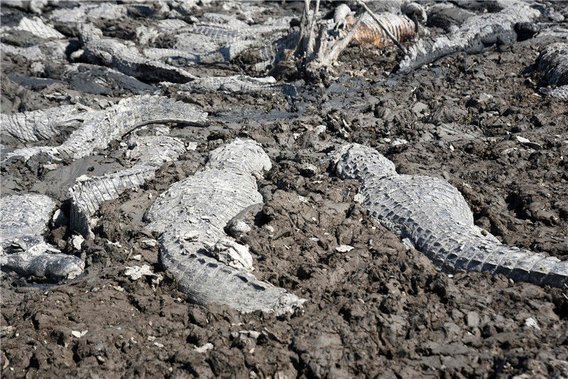 當?shù)貢r間2016年12月15日,索馬里邦特蘭,干旱的土地上散布著羊的尸體。當?shù)卦庥龈珊堤鞖?,牲畜受到危害?br>