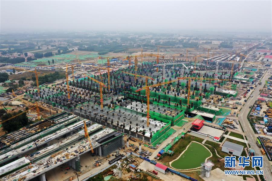 建設中的雄安站(10月10日無人機拍攝)。新華社記者邢廣利攝