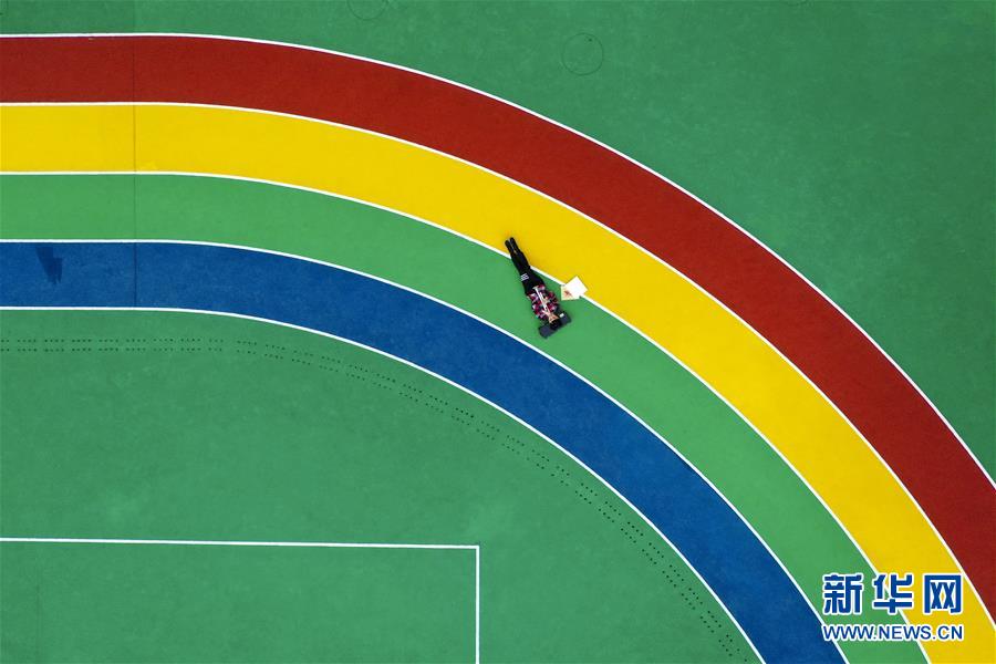 午休時(shí)間,王太樊在學(xué)校的操場(chǎng)上練習(xí)小號(hào)、背誦樂譜(10月10日無人機(jī)拍攝)。 新華社記者 劉潺 攝