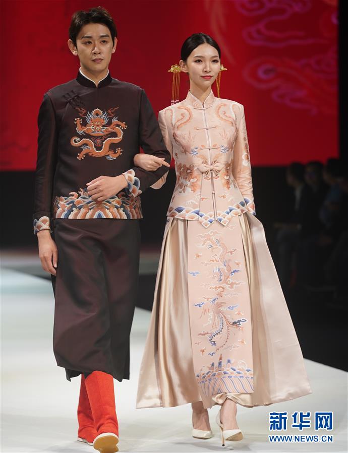 10月16日,模特在展示婚慶禮服。 當(dāng)日,“愿·緣·圓”上久楷婚慶主題秀在江蘇省蘇州市吳江區(qū)盛澤鎮(zhèn)舉行。新華社記者 季春鵬 攝
