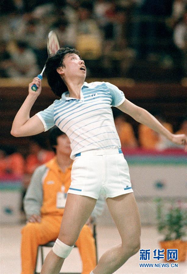 圖為韓愛萍在韓國漢城(首爾)舉行的第十屆亞洲運(yùn)動會羽毛球女子單打比賽中擊球(資料照片),她最終奪得女單冠軍。新華社記者胡越攝