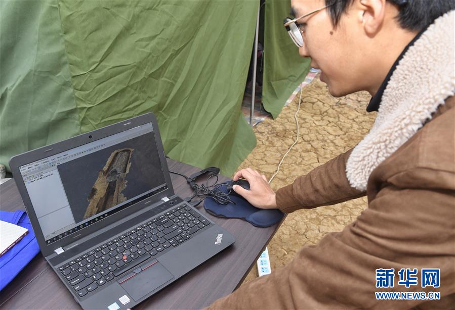 11月15日,考古人員在演示電腦制作的墓地三維圖。