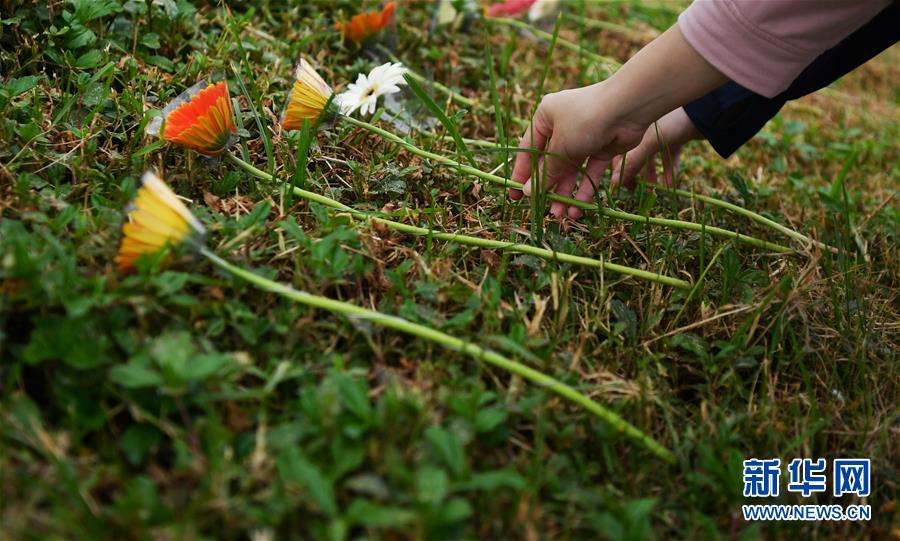 10月19日,參與秋祭活動(dòng)的民眾在活動(dòng)現(xiàn)場(chǎng)獻(xiàn)花。 新華社記者 陳斌 攝