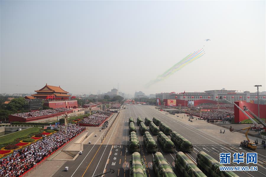 10月1日上午,慶祝中華人民共和國成立70周年大會(huì)在北京天安門廣場(chǎng)隆重舉行。這是行進(jìn)中的儀仗方隊(duì)。 新華社記者 任瓏 攝