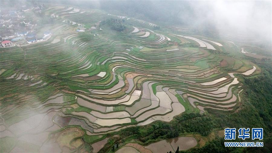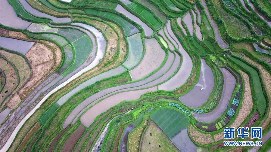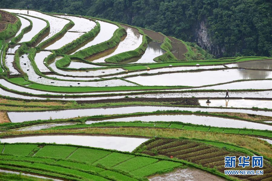 5月18日,農(nóng)民在貴州省丹寨縣龍泉鎮(zhèn)高要梯田里勞作。初夏時(shí)節(jié),位于貴州省丹寨縣龍泉鎮(zhèn)的高要梯田景色優(yōu)美。新華社記者楊文斌攝