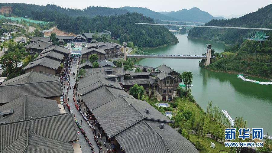 7月2日,游客在丹寨萬達(dá)小鎮(zhèn)游覽(無人機(jī)拍攝)。新華社記者歐東衢攝