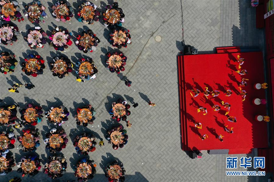 11月2日,南京仙林街道仙林新村社區(qū)居民參加千家宴(無(wú)人機(jī)拍攝)。 新華社記者 季春鵬 攝