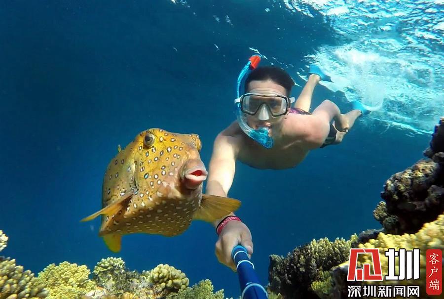 017年8月4日報道(具體拍攝時間不詳),白俄23歲女子Vladislav Starastsenka在埃及沙姆沙伊赫水域潛游時邂逅一條可愛的盒子魚,這家伙看到Vladislav在自拍后立即湊上前去露了一臉,對著鏡頭嘟嘴賣萌,畫面十分搞笑。