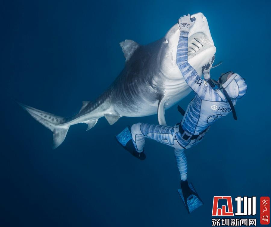 2019年1月28日報道(具體拍攝時間不詳),虎鯊向來是出了名的兇猛,但這組照片中的虎鯊們似乎變成了粘人的萌寵一般。鏡頭下,它們開心又友好地同潛水員們互動著,享受潛水員輕撫肚皮,緩緩地在潛水員周圍游動。攝影師在巴哈馬群島老虎灘水域拍下了這組照片。