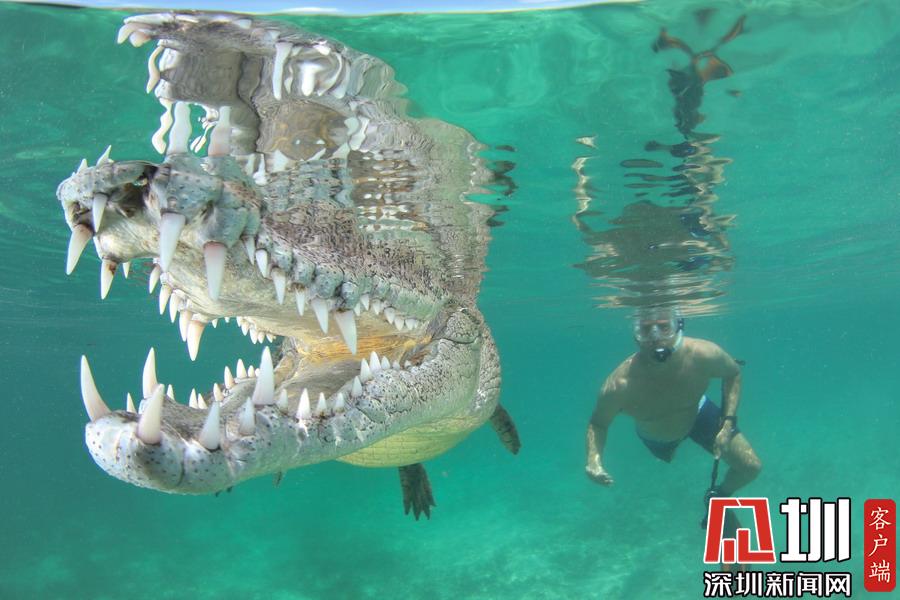 2018年7月16日報道(具體拍攝時間不詳),在墨西哥Chinchorro Banks水下,這些鱷魚們艷??刹粶\,它們有機(jī)會同美女模特在水下同游。鏡頭里,它們露出獠牙鋸齒,看上去就像是開心大笑的樣子,想必是和美女同游才如此樂得合不攏嘴。而能敢于直面這些兇殘的肉食性動物,這些美女模特也顯得是勇氣十足,令人欽佩。攝影師Ken Kiefer拍攝了這些震撼畫面。