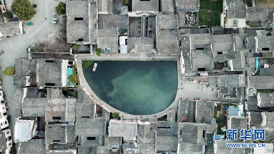 這是11月15日無(wú)人機(jī)拍攝的宏村月沼晨景。新華社記者韓曉雨攝