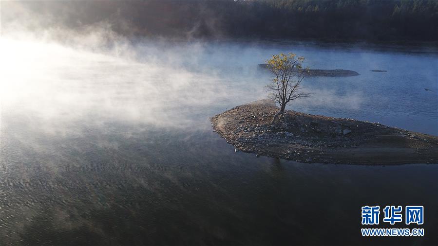 11月14日無人機拍攝的安徽黟縣奇墅湖晨景。新華社記者張端攝