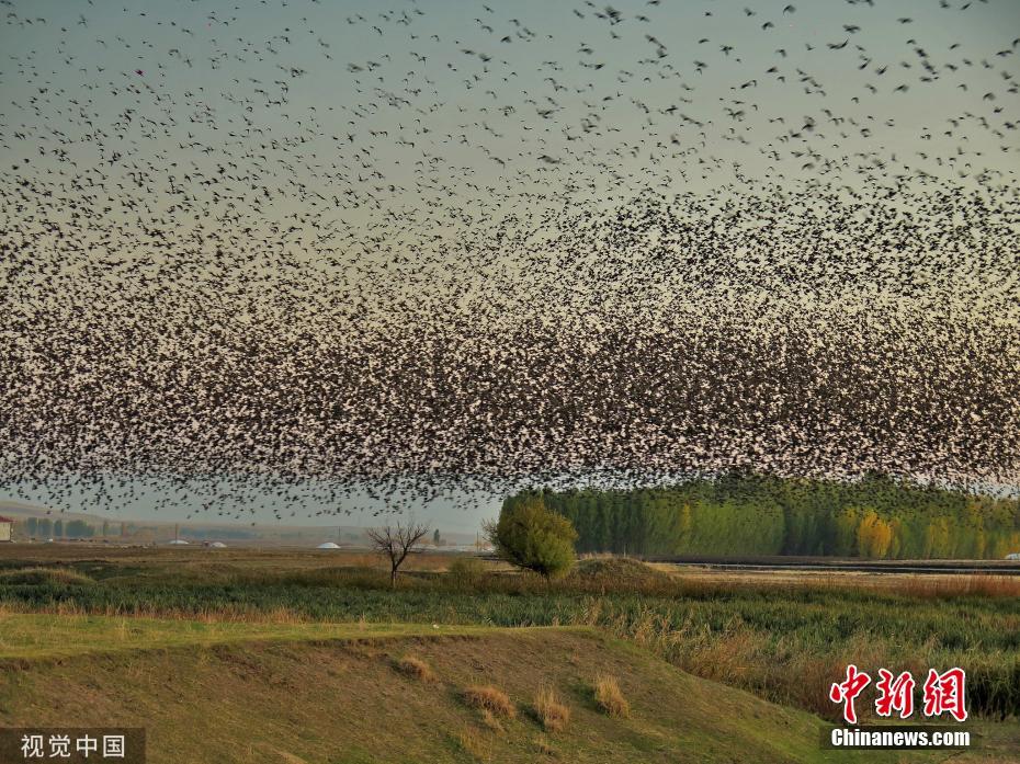 近日,土耳其穆什,椋鳥群遷徙途中,黑壓壓一片遮擋天空。圖片來(lái)源:視覺(jué)中國(guó)