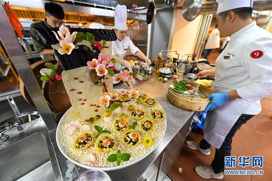 11月20日,在馬來(lái)西亞吉隆坡,參賽廚師在制作美食。新華社記者朱煒攝