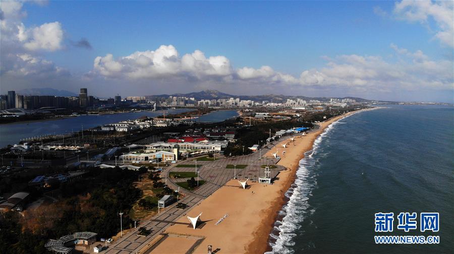 11月22日無(wú)人機(jī)拍攝的日照市萬(wàn)平口海濱風(fēng)景區(qū)。山東省日照市萬(wàn)平口海濱風(fēng)景區(qū)是當(dāng)?shù)芈糜蔚囊粡垺懊?,該景區(qū)憑借優(yōu)美的海灘、良好的水質(zhì)吸引了不少游客。新華社記者王凱攝