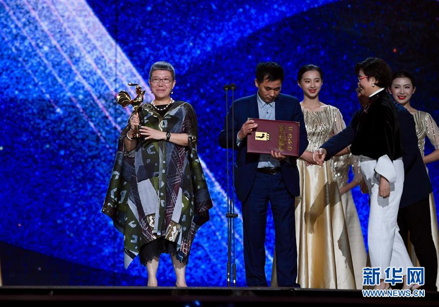 11月23日,電影《地久天長》主演詠梅獲得最佳女主角獎(jiǎng)。 當(dāng)日,第32屆中國電影金雞獎(jiǎng)?lì)C獎(jiǎng)典禮在福建廈門舉行。 新華社記者姜克紅攝
