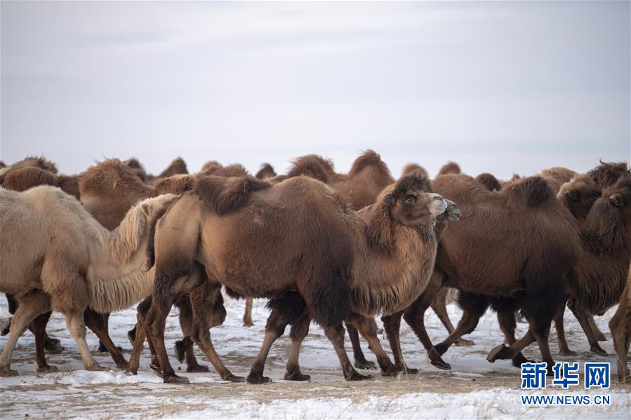 11月24日,一群駱駝在新疆吉木乃縣“萬駝園”覓食。
