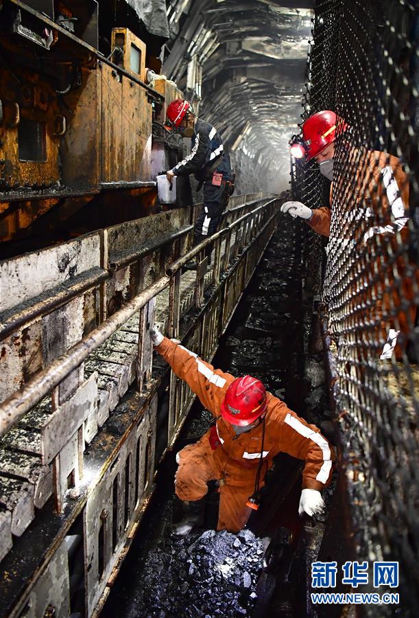 11月26日,在上灣煤礦12402綜采面內(nèi),工作人員對(duì)采煤機(jī)進(jìn)行檢修。 新華社記者 邵瑞 攝