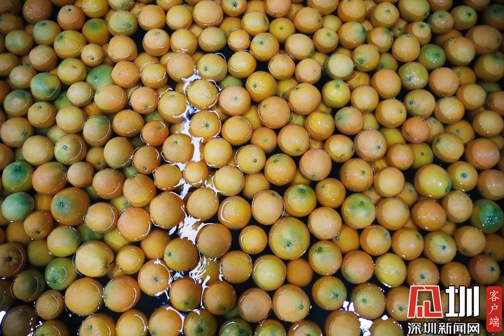 浸泡在水中待處理臍橙。
