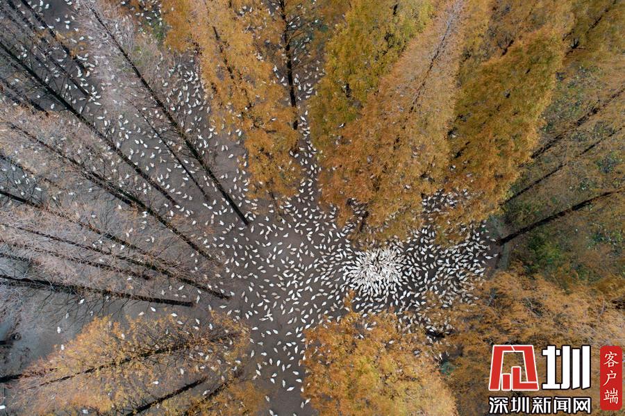 江蘇泗洪5000多只鵝林場吃食,場面壯觀。