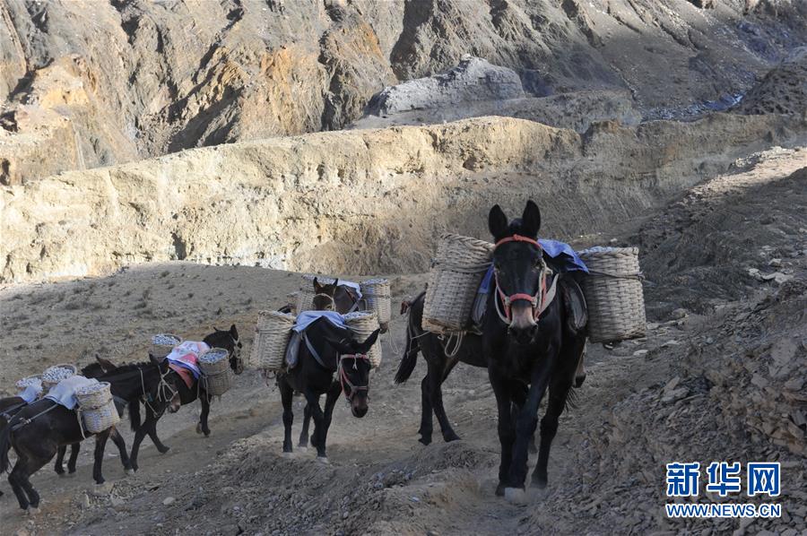 12月6日,騾馬隊(duì)馱負(fù)工程物料前往山頂塔基施工現(xiàn)場。新華社記者侯捷攝