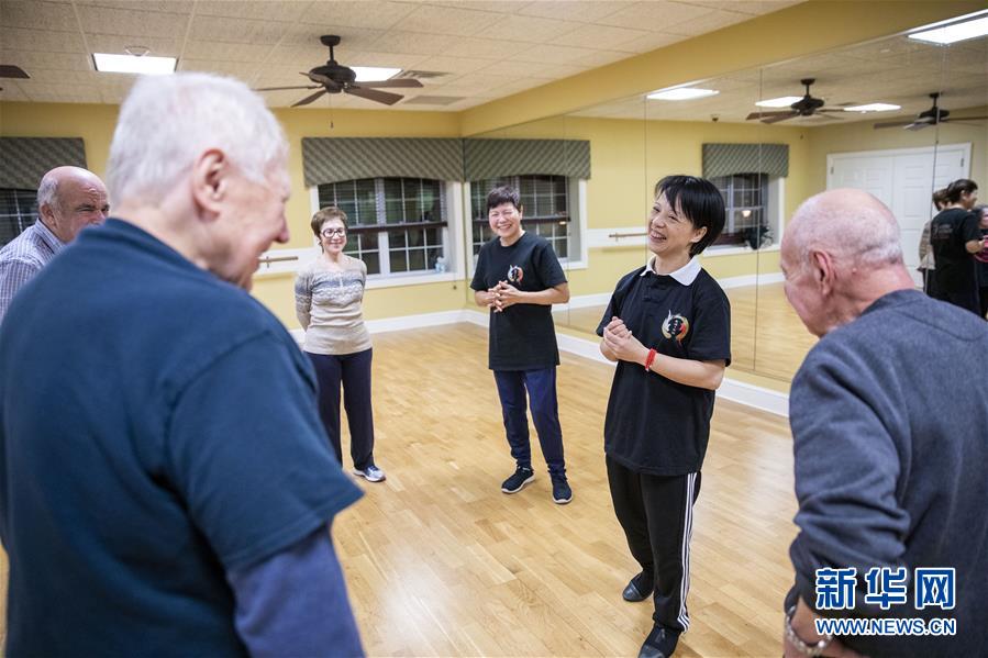 陳思坦的夫人林旭在位于美國紐約長島的一所社區(qū)老年活動(dòng)中心指導(dǎo)老人練習(xí)太極(11月20日攝)。這里是陳思坦夫婦開設(shè)的一個(gè)公益教學(xué)項(xiàng)目。11月的紐約已進(jìn)入初冬,位于美國紐約長島的思坦太極武術(shù)中心依然一片紅火景象,學(xué)員們從5歲的孩童到80多歲的老人,操練著太極拳、太極劍、長拳等武術(shù)招式。這里的主人陳思坦、林旭夫婦,也從早忙到晚,精心指導(dǎo)每一位學(xué)員的一招一式。6歲習(xí)武,22歲成為中國全國冠軍,26歲獲得首個(gè)世界冠軍……直到30歲退役,陳思坦在運(yùn)動(dòng)員生涯中曾獲得過32次國內(nèi)外各類武術(shù)大賽冠軍。36歲那年,懷著以太極拳和中國武術(shù)為媒介向世界推廣中國文化的夢想,陳思坦到美國紐約尋找新的舞臺。經(jīng)過十多年的艱苦打拼,陳思坦夫婦目前在紐約長島、法拉盛和曼哈頓都開設(shè)了長期的課程,思坦太極注冊在編的各個(gè)年齡段的學(xué)員近千人,有些“高徒”現(xiàn)在自己也開班授課,將太極推向更多地方。陳思坦夫婦現(xiàn)在思考更多的是如何將太極和武術(shù)推廣給更多的美國人,并讓他們理解其中蘊(yùn)含的平衡、和諧的中國文化理念。他們創(chuàng)辦了紐約太極健身氣功活動(dòng)日,在各類學(xué)校和社區(qū)開設(shè)太極或者武術(shù)課程,并利用美國的亞太裔文化月和多元文化節(jié)舉行武術(shù)和太極表演和體驗(yàn)課程,讓更多美國人親眼看到、親身體會中國武術(shù)的魅力。從2011年起,他們還參與創(chuàng)辦了紐約太極大賽,如今已舉行九屆,吸引了美國、加拿大和中國國內(nèi)的隊(duì)伍參賽,影響力逐漸擴(kuò)大。新華社記者王迎攝