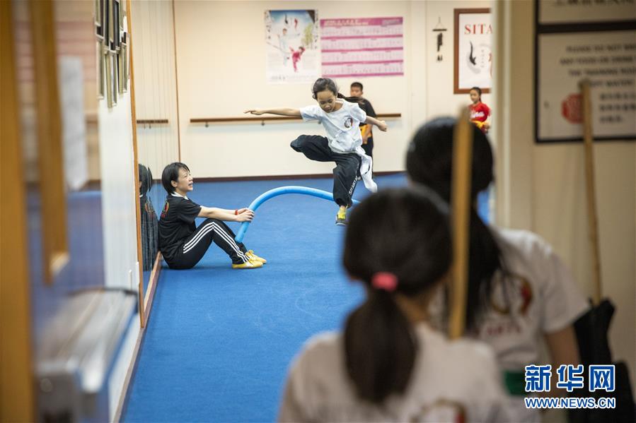 陳思坦的夫人林旭在位于美國紐約長島的思坦太極武術(shù)中心指導(dǎo)小學(xué)員練習(xí)武術(shù)(11月20日攝)。11月的紐約已進入初冬,位于美國紐約長島的思坦太極武術(shù)中心依然一片紅火景象,學(xué)員們從5歲的孩童到80多歲的老人,操練著太極拳、太極劍、長拳等武術(shù)招式。這里的主人陳思坦、林旭夫婦,也從早忙到晚,精心指導(dǎo)每一位學(xué)員的一招一式。6歲習(xí)武,22歲成為中國全國冠軍,26歲獲得首個世界冠軍……直到30歲退役,陳思坦在運動員生涯中曾獲得過32次國內(nèi)外各類武術(shù)大賽冠軍。36歲那年,懷著以太極拳和中國武術(shù)為媒介向世界推廣中國文化的夢想,陳思坦到美國紐約尋找新的舞臺。經(jīng)過十多年的艱苦打拼,陳思坦夫婦目前在紐約長島、法拉盛和曼哈頓都開設(shè)了長期的課程,思坦太極注冊在編的各個年齡段的學(xué)員近千人,有些“高徒”現(xiàn)在自己也開班授課,將太極推向更多地方。陳思坦夫婦現(xiàn)在思考更多的是如何將太極和武術(shù)推廣給更多的美國人,并讓他們理解其中蘊含的平衡、和諧的中國文化理念。他們創(chuàng)辦了紐約太極健身氣功活動日,在各類學(xué)校和社區(qū)開設(shè)太極或者武術(shù)課程,并利用美國的亞太裔文化月和多元文化節(jié)舉行武術(shù)和太極表演和體驗課程,讓更多美國人親眼看到、親身體會中國武術(shù)的魅力。從2011年起,他們還參與創(chuàng)辦了紐約太極大賽,如今已舉行九屆,吸引了美國、加拿大和中國國內(nèi)的隊伍參賽,影響力逐漸擴大。新華社記者王迎攝