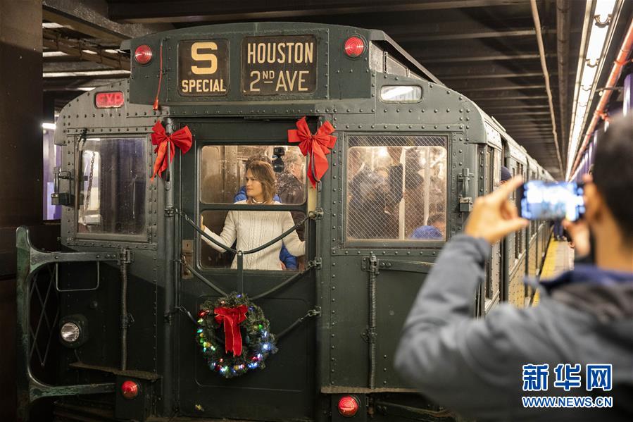 12月8日,在美國紐約,人們搭乘“懷舊專列”。每年感恩節(jié)到新年之間的星期日,紐約地鐵都會用1932年至1977年間使用的老式列車在運營的線路上開行特別的“懷舊專列”,人們穿戴舊時服飾專程前來搭乘,體驗時光回溯的奇妙旅程。新華社記者王迎攝