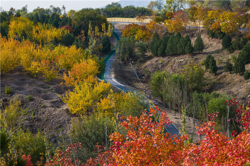 2019年11月1日,北京,深秋的青龍湖森林公園,層林盡染絢麗多彩。