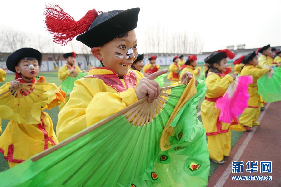 12月19日,河北省灤州市小閆營小學學生在排練地秧歌。新華社記者 牟宇 攝